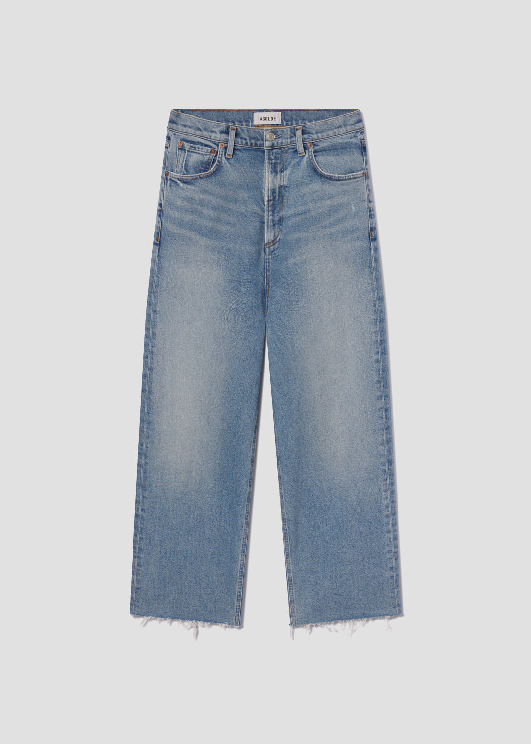 AGOLDE's Ren jeans are crafted with EcoMade Fiber, combining regeneratively grown cotton, Eco-Indigo dye, and plant-based LYCRA® EcoMade Fiber to set a new standard for sustainable denim. Offering a relaxed fit with a high-rise waist and cropped wide legs, these jeans are perfect for casual days. Pair them with a half-tucked tee or sleek bodysuit for an effortlessly chic look.